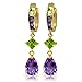 14k Yellow Gold Natural Peridot and Purple Amethyst Hoop Dangle Earrings