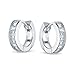 Sleek and chic, you will love our 0.55in, rhodium plated silver huggie hoop earrings to enhance any ensemble. Featuring a channel set baguette line of 5 cut CZ, these earrings are a great gift April birthdays.