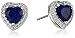Lovely stud earrings featuring heart shaped 6mm created blue sapphire stones with halos of created white sapphires set in 925 sterling silver