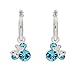 Officially Licensed Disney Jewelry; Gleaming hoop earrings feature dangling Minnie Mouse charms adorned with elegant Aquamarine Light Blue crystal birthstones for sparkling style