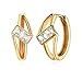 「FRIENDLY MATERIAL」All The Metals We Use Are Lead Free & Nickel Free & Hypoallergenic.Earrings Come in 14K Gold Filled over Brass,One Rectangle-shape Diamond Micro Inlay The Hoop.High Polished Surface,Smooth and Easeful.Prevent Allergy,Safe and Lightweight to Wear.