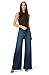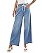 High waisted jeans for women feturing pleated wide leg in full length, drawstring elastic waist in high rise, pull on closure, 2 hand pockets at side; Vintage and trendy style