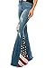 FEATURE -- High waisted flare denim jeans with patriotic american USA flag, Designed with a classic 5-pocket design, fly button, and zipper closure. Curated frayed denim style with little contrast wash hem details.
