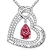 Pendant necklace featuring two heart shaped created ruby stones in a double open heart design with created white sapphire accents in 925 sterling silver