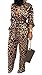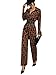 Elegant leopard print high waisted pockets palazzo pants club party cocktail jumpsuits with belt