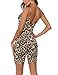 Sexy Halter Sleeveless Leopard Print High Slit Wide Leg Jumpsuit Romper with Bellt for Women