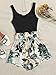 Features: sleeveless, notched Neck, rib-Knit, paper Bag Waist, tropical print, high waist, wide Leg, knot front, belted, short jumpsuit