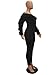 Features: long sleeve, ruched space layer sleeve, off the shoulder, front zip-up, long pants, solid skinny bodycon plus size jumpsuits rompers