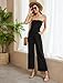 ★Features&Design:Smocking tube top, sleeveless strapless, long wide legs, high waisted,one piece off shoulder jumpsuit,tie knot front, casual loose fit.
