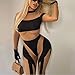 Feature: One piece jumpsuit for women, see through, sheer Mesh patchwork, irregular, long sleeve, long pants, solid color, slim fit, bodycon jumpsuit for women sexy, brunch outfits for women, romper, bodysuit, birthday outfits for women sexy.