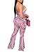 Women Summer Spaghetti Strap Sleeveless Wide Leg Long Bell Pants Backless Strip Casual Jumpsuit and Romper Overall.
