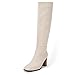 👣【Features】Square toe, stacked chunky block heels, knee high boots, side zipper, thigh high fashion boot, wide calf.Sleek and simple, these classic booties are very versatile and very everyday!There are two different materials to choose from, faux leather or faux suede!