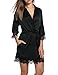 💎Sexy Robes: This comfortable and sexy v-neck robe features lace-trim 3/4 sleeves wrap design robe, above knee lengh. Inside tie for a better fit and self-detachable belt, fabric strings on the inside for security