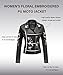Unique Design: Leather jacket features exquisite floral embroidery, chic turn down collar and slim fit design, faux leather short coat with long sleeves, full zip up closure,make you more highlight your elegant temperament.