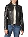 Sleek style: Women’s leather jacket with button collar and metallic zippers (center and arm vents) keeps you warm and in style; keep your things tucked away or warm your hands with 2 side pockets
