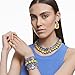 Items delivered: (1) Swarovski Orbita bracelet with blue and yellow center piece and green crystal accents, on a gold tone finish setting, in Swarovski bracelet box