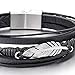 Mens Women Stainless Steel Feather Multi-Strand Black Braided Leather Bangle Bracelet