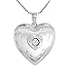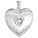 Size & Material: 3/4 inch rhodium-plated-silver heart charm pendant that holds up to 5 round shaped cubic zirconia birthstones. This personalized heart locket includes a 16 inch chain with 2 inch extender. Locket is hinged and can be opened to add or remove stones.