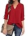 Trendy Tops: Starting With V-Shaped Neckline With The Button Placket At The Front to adjust And The Long batwing sleeves Can Be Rolled Up, You Can Wear As Long Sleeves Or 3/4 Sleeve. This Blouse Has a Hip-Length And Loose Fit Cut Design Brings You Free Movement