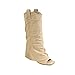 Women Wedge Boots Fold Over Knee High Mid-Calf Peep Open Toe Bootie .