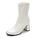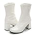 RETRO GO GO BOOTS: These mid calf GOGO boot feature in square toe and block heel, full length zipper closure. Solid colors available: black, white, red, silver and pink.
