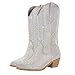 ❤Materials: The glitter cowboy boots have steady chunky block heel and the antiskid rubber sole. Suitable for all seasons. Breathable insole have you walking comfortably for a whole day!