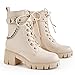 Combat Boots Features - 3 Solid Color-Black/Beige/Brown .Chunky Platform Mid Calf Booties / Lace Up with Side Zipper Bootie / Round Toe Soft Ankle Boots.