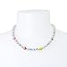 Lustrous pearl strand necklace with minimal rainbow-colored seed beads, L-O-V-E beads, smiley face, yin-yang and eye bead. Necklace has a lobster clasp closure. Made from polished metal, glass, plastic and faux pearls.