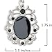 The vintage influenced design of the 1.75 inch by 1.5 inch oval shaped onyx and silver tone pendant with 8 simulated jet black crystals create a striking and distinctive look