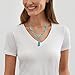 It’s easy to see why this necklace whisks us to our favorite summer vacation. It’s decked in vibrant turquoise stones that remind us of the beach and lake. They’re strung into a lariat, which looks great worn with open collars and necklines. The piece comes with a “.925” sterling silver stamp as a symbol of guaranteed product quality.