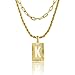 ♥Personalized Initial Necklace Set Design -Gold layered paperclip chain letter initial necklaces set with square charm which is engraved with initial letter on the front.