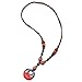 Boho Ethnic Long Necklace Wood Beads Black Red Gem Stone String with Dangling Oval Charm