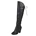 PERFECT FIT AND STYLE: Versatile, thigh-high boots have a simple, sleek upper made out of vegan suede and a low, stacked heel adds some perfection to your look. Perfect for festivals and year round wear!
