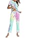 2 Pices Pajamas: this pajama top with short sleeve,round neck,and fashion tie dye printed design, full-length pants with comfortable elastic waistband and drawstring, can adjustable waistline depend your need,very loose fit style, enjoy it on relaxing day or night for your lazy time, best choice for nightwear and sleepwear.