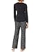 Womens pj set features notch collar long sleeve button down top with chest pockets, long pants with elastic waist and drawstring