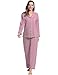 【CHIC DESIGN FEATURES】The button down front facilitates you to put it on and off and is amazingly useful for breastfeeding, post-operative wearing. Contrast Piping make this Long Sleeve Pj Sets Durability and Fashion, notch collar and chest pocket add a sense of style and glamour for you.