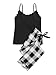 Sleeveless, solid color, scoop neck crop tank top, gingham print, drawstring waist, pajama shorts