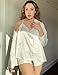 DESIGN&FEATURES: The cute satin silk cami pajamas tops features v neck, low cut, lace decoration and adjustable straps; the shorts features high waisted,elastic waist, side lace decoration, casual loose style. Flattering and elegant from day to night.