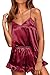 SHOWING OFF YOUR CHARMING: The Silk Pajamas Top Features V Neck, Racerback And Spaghetti Straps. The Pajamas Shorts Features High Waisted, Elastic Waist, Ruffle Hem And Loose Wide Leg. High Quality Fabric Makes This Satin Pjs Elegant And Luxurious. The Overall Special Jacquard Print Is The Highlight Of This Lounge Set, Adding A Touch Of Fashion And Cuteness