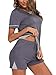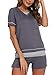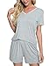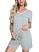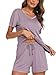 ♥Two-Piece Pajama Shorts Set: Top featuring V neck, short sleeves, pleated front neckline & Shorts featuring elastic waistband with adjustable drawstring and thigh length