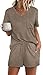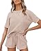 Utility Set: these womens 2 piece Pjs sets featuring round neck short sleeve tops and drawstring waist short pants with pockets, you can adjustable waistline depend your need, it is securely and comfortably.