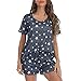 Cute Pajama Short Sets for Women: short sleeve top with round-neck. Shorts with elastic waist and drawstring. Adorable prints: coffee, books, sleep mask, pillows, etc.
