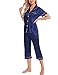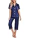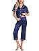 Two-piece Pajama Set--Womens button tops and capri pants, mid calf length with contrast piping color hem design. Pants with elasticband and won't feel tight. The exquisite design makes you beautiful and elegant, enjoy your relaxing time.
