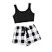 Sleeveless, solid color, scoop neck crop tank top, gingham print, drawstring waist, pajama shorts