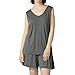 Lu's Chic womens 2 piece sleeveless pajamas, scoop neck, shorts with elastic band, mid thigh length, solid plain grey color