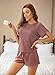 Outfit Set: these women 2 piece Pjs sets featuring round neck short sleeve tops and drawstring waist short pants with side pockets, easy to hold change, keys or phone, you can adjustable waistline depend your need, it is securely and comfortably.