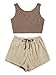 Feature: Scoop neck, tank top, button front, tie front shorts, fashionable