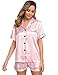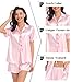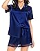 UNIQUE DESIGN & FEATURES - The tie front shorts sleeve Top - Sexy unique closure-tie knot front,notch collar,short sleeve/cute shorts - elastic wasit,high waisted,The exquisite details of this silk satin pajama will show your natural elegance and bring you comfortable wearing experience.