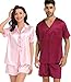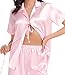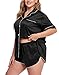 FEATURES PAJAMA TOP - Two Piece Pajama Sets featuring classic sleepwear style.The Summer short sleeve button-down shirt sleepwear top.Silky-smooth V-neck tops blouse with a chest pocket, notch collar, and button-front top hits at the hips. Lightweight and Skin-friendly silk pajamas women's plus size.