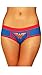 This cute plus size blue panty features a red trim, a gold Wonder Woman logo, piping details, and a cheeky cut back.